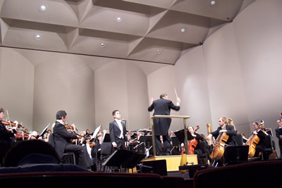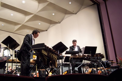 Following was a breathtaking performance of the Barber Adagio for Strings. I think the whole audience was taken aback – we could barely issue an applause for fear that the moment would be broken. In striking contrast, the stage next gave way to a trio of percussionists to perform Russell Peck’s The Glory and the Grandeur Concerto for Percussion Trio and Orchestra. If the Adagio was breathtaking, this one left us breathless! From the quick maneuvering required at times to the stunning display of virtuosity on the multitude of instruments, these guys were fantastic! Jynae and Lisa and I commented during the intermission that followed that we wished they would come out and play it again.