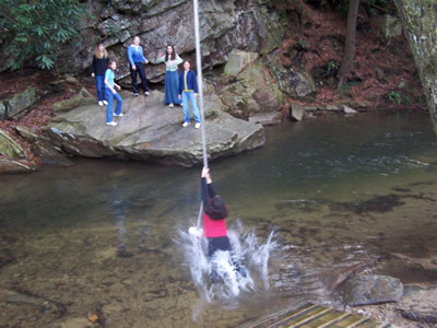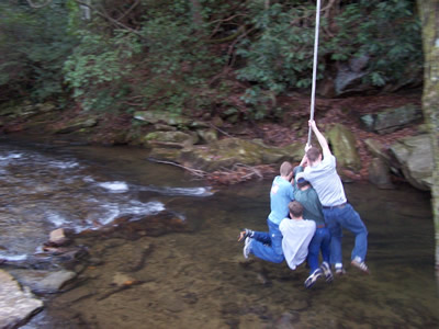 A rope swing at the bottom of the trail captured our attention and Dustin, Dan, Dave, Nick, Joe and Ryan attempt to set a new world record by simultaneously swinging above the cold waters below.