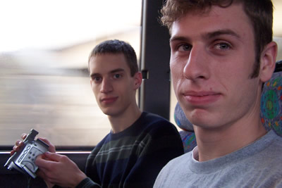 Josh and Joe pass time away on the bus.