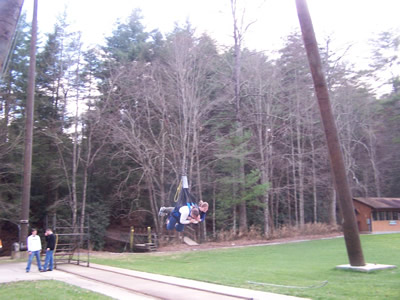 Rebekah and Sarah survive their ride on the giant swing, another favorite free time activity at the camp.