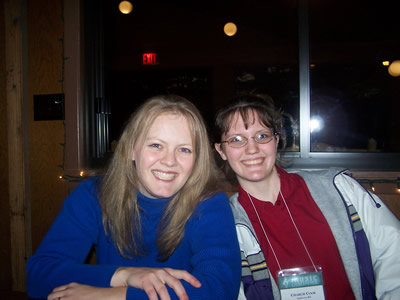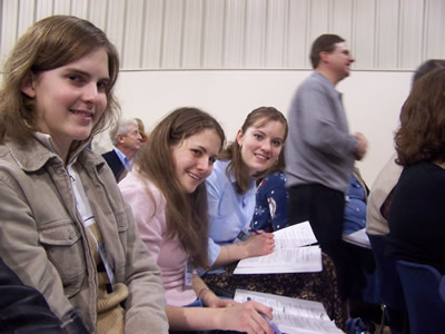 Emily, Libby and Rebekah are poised and ready for one of the General Sessions.