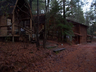 Our lovely little cabin, tucked back into the woods.